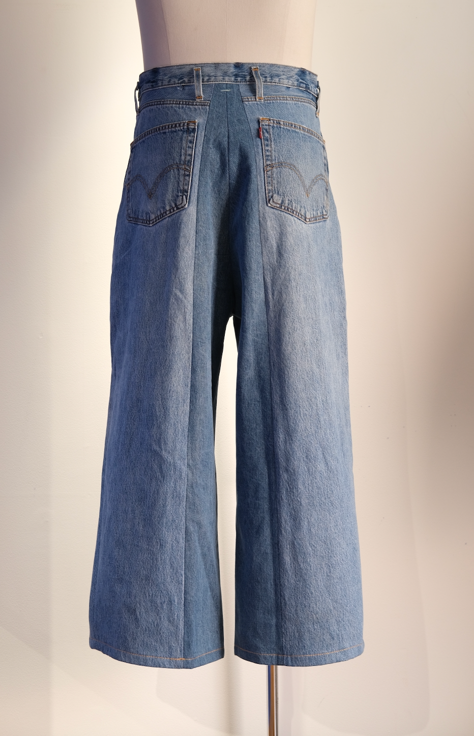 These denim pants are made by dismantling a 40" or larger vintage 501 and reconstructing it into a BAGGY silhouette.