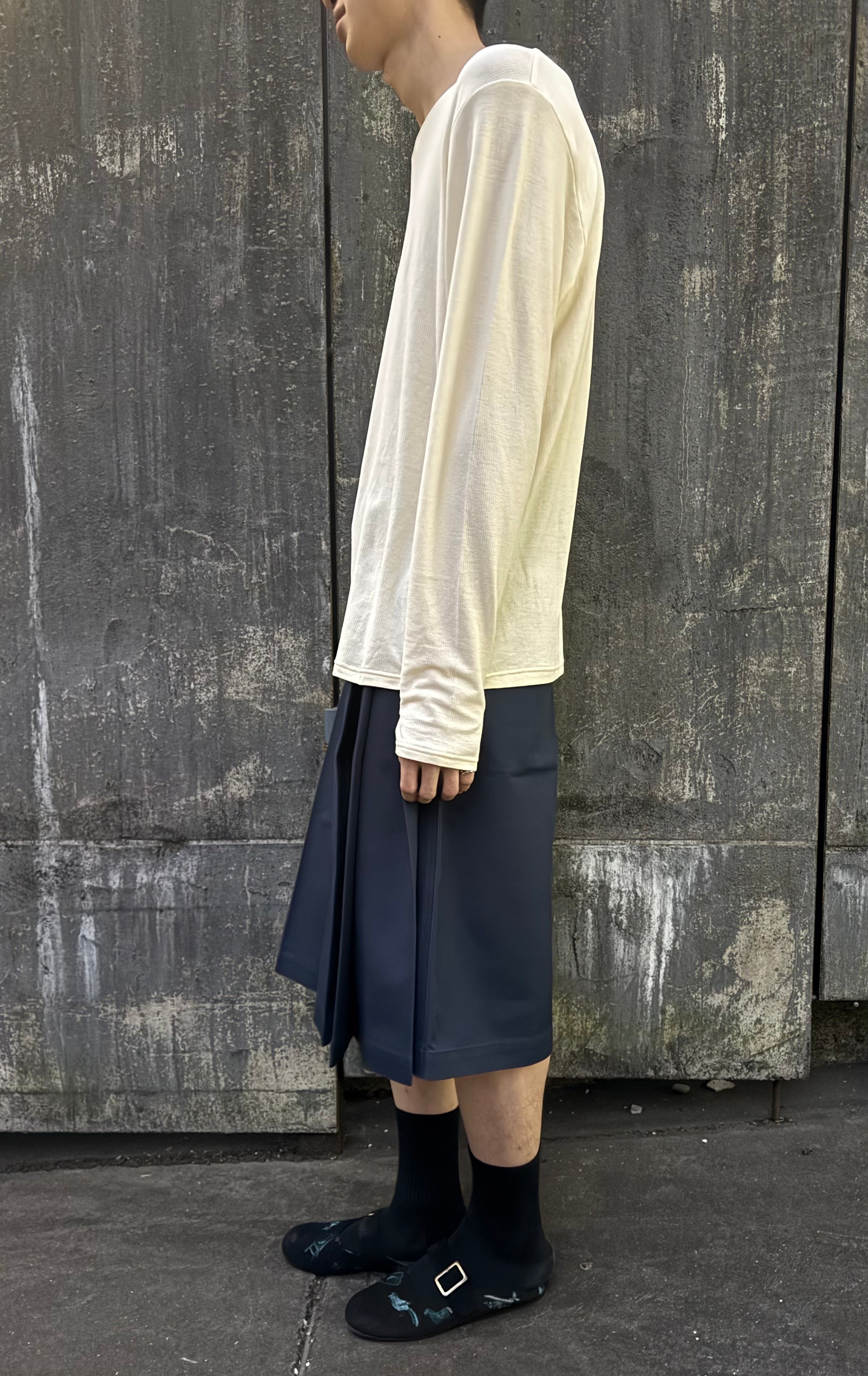 The fabric is a rib knit with a moist, supple texture, crafted to evoke the distinct atmosphere of an antique garment.