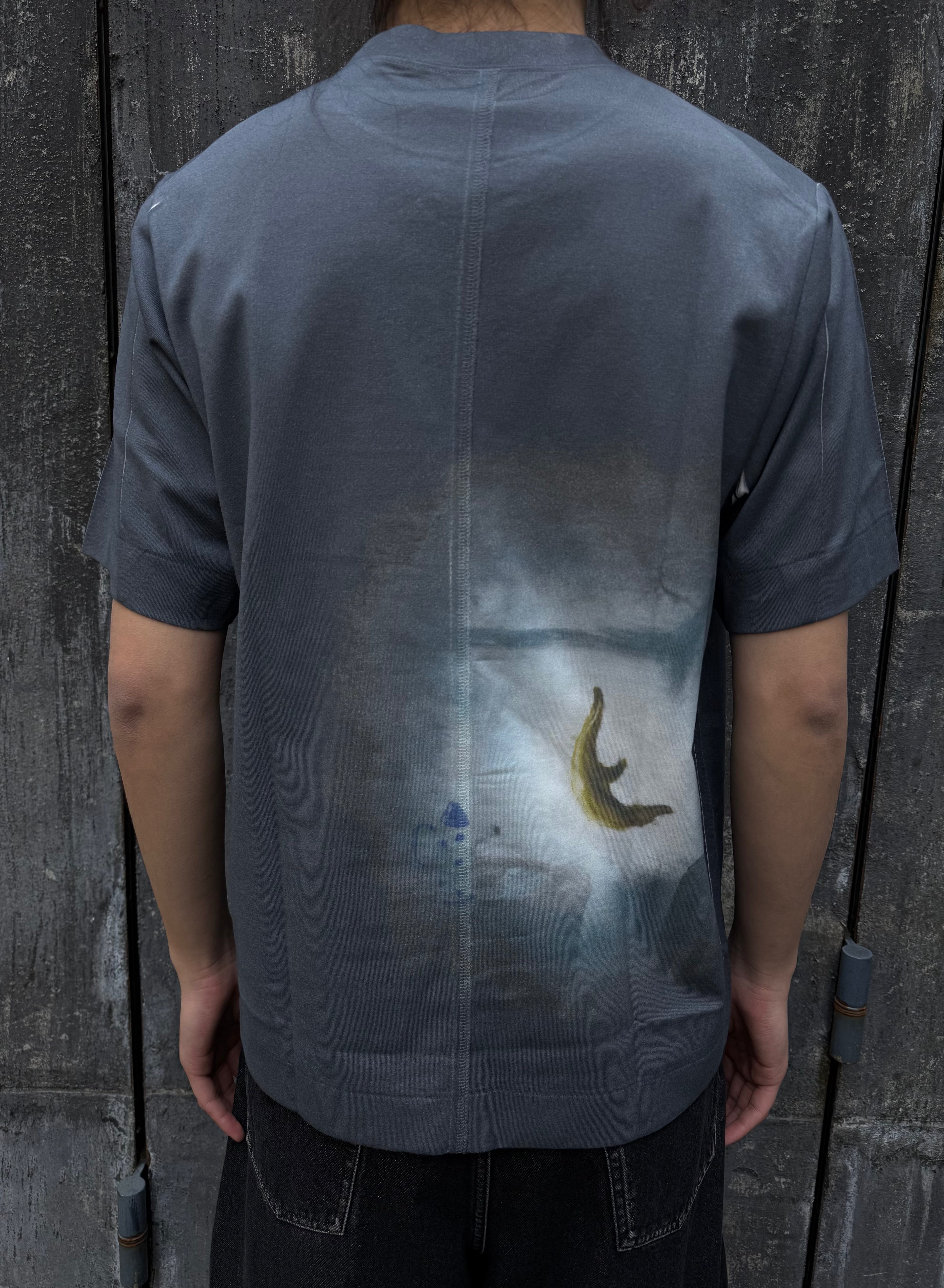 A short-sleeve T-shirt with a well-balanced regular fit that is neither too tight nor too oversized. It features prints on both the front and back of two paintings that symbolize ISSUE #8. The fabric is a 40/2 jersey knit in a high gauge, offering a refined and smooth texture.