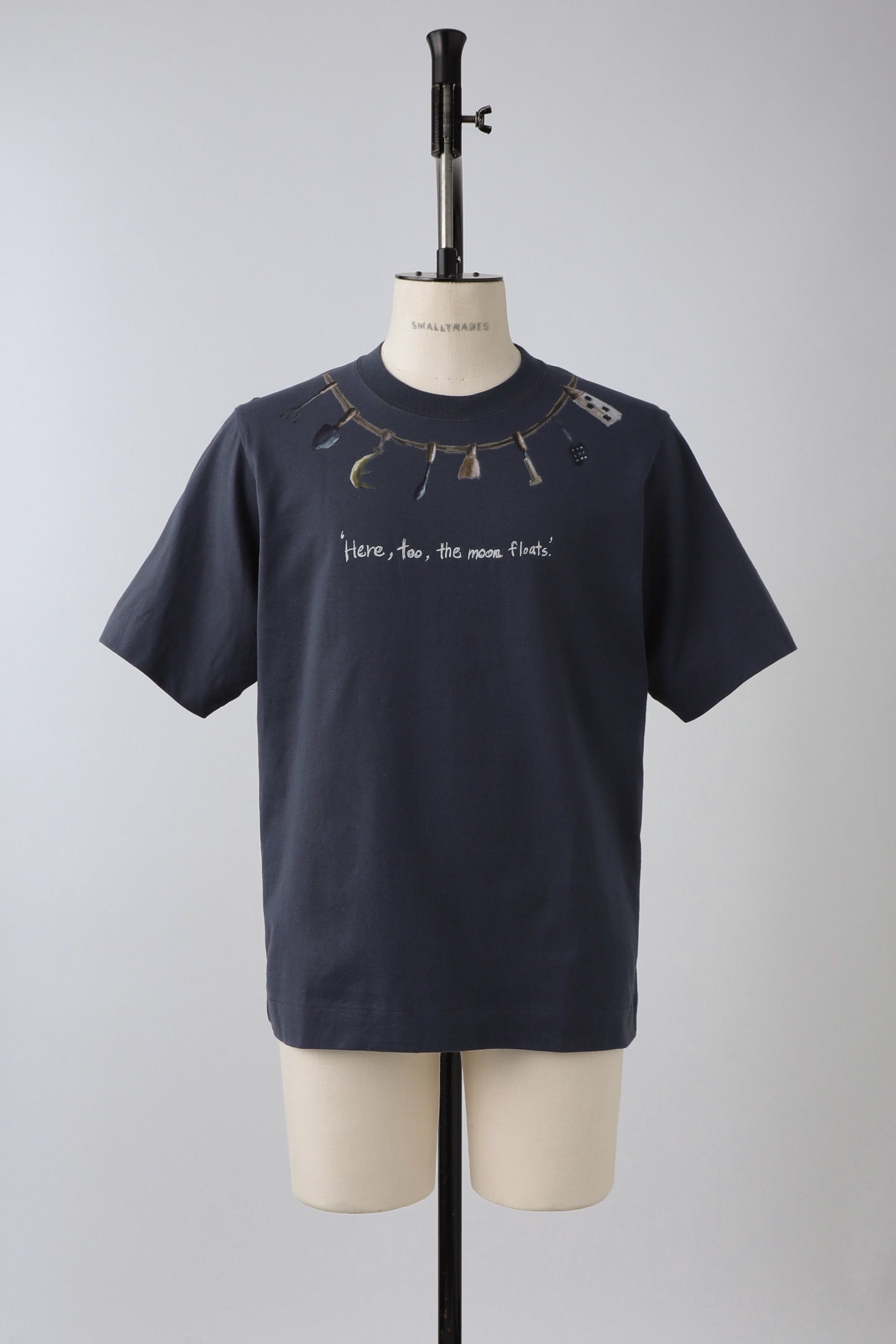 The print features a hand-drawing by the designer inspired by tool racks found in Western kitchens. In a whimsical twist, the moon is tucked away among the various utensils.