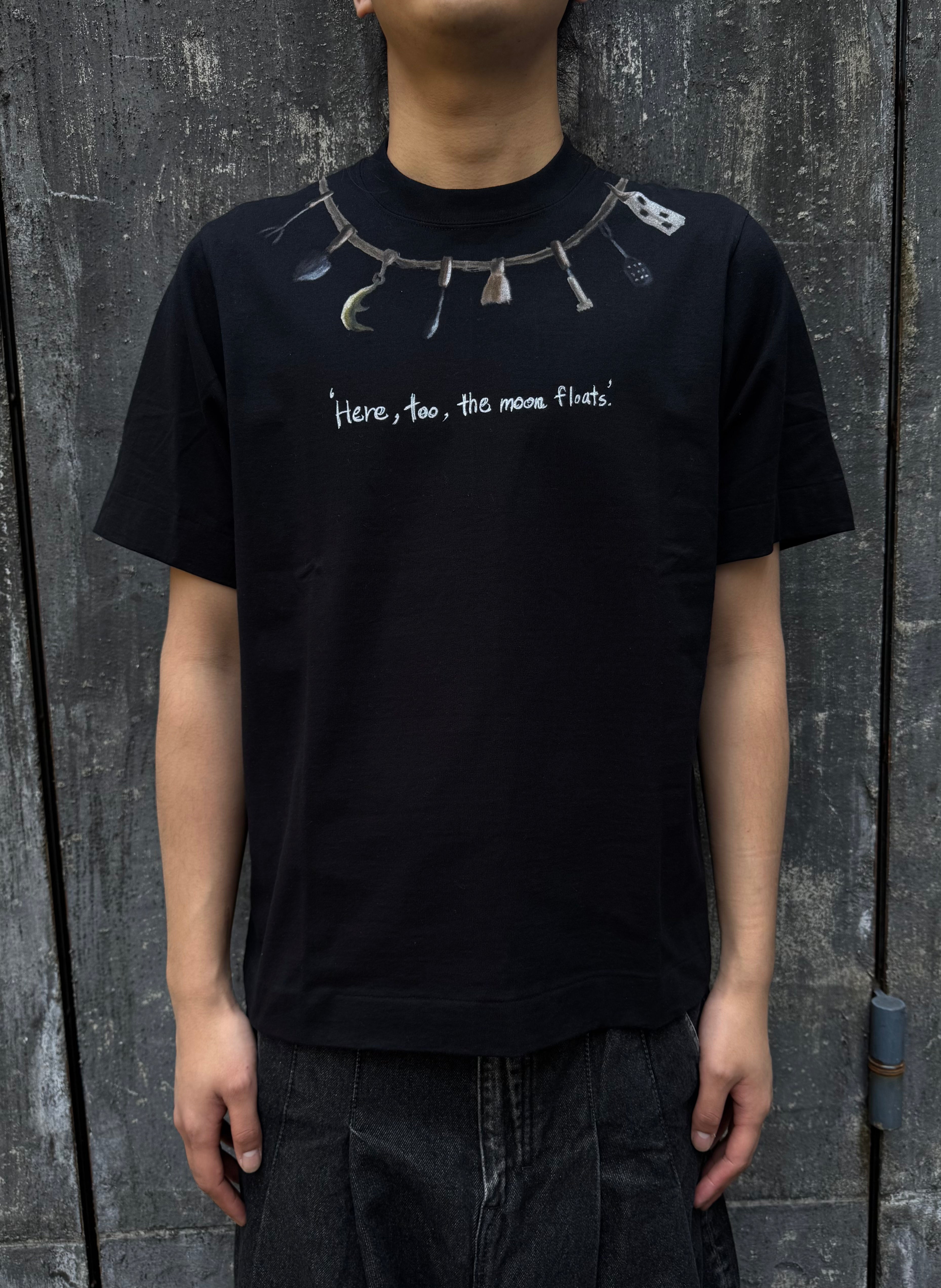 The print features a hand-drawing by the designer inspired by tool racks found in Western kitchens. In a whimsical twist, the moon is tucked away among the various utensils.