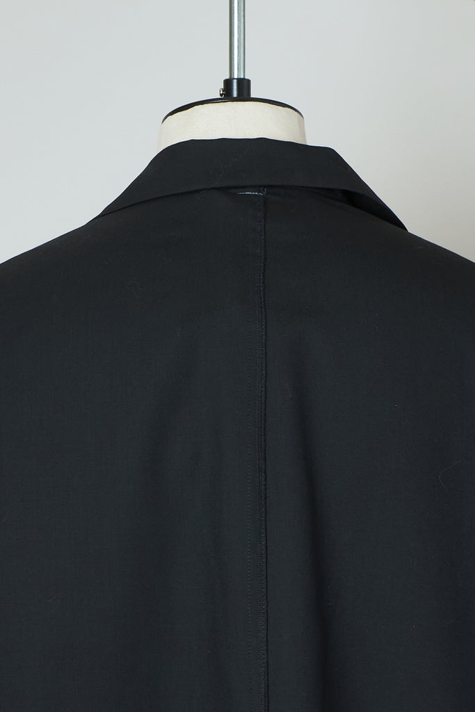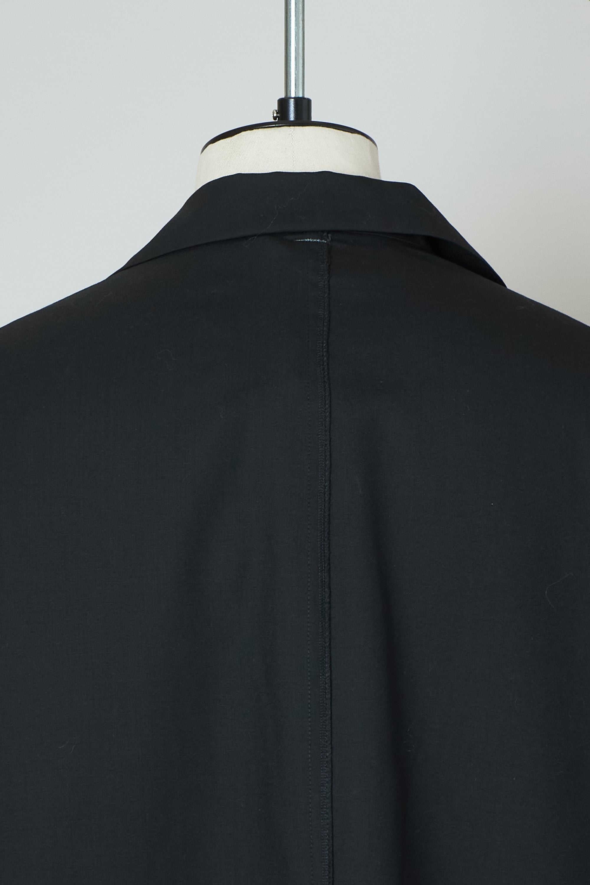 肘のあたりに肩線が来るくらいのドロップショルダーと、二人分くらいの身幅をとった大胆なシルエットが特徴です。