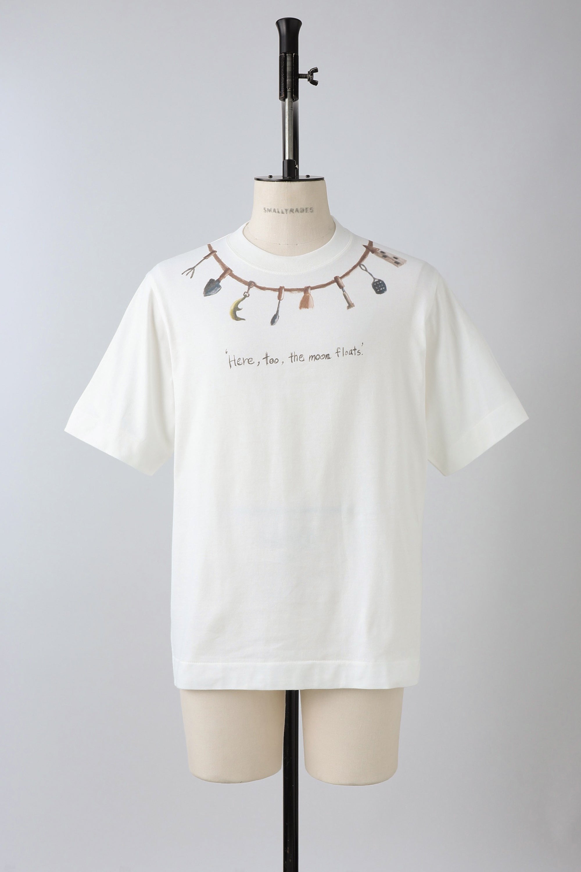 The print features a hand-drawing by the designer inspired by tool racks found in Western kitchens. In a whimsical twist, the moon is tucked away among the various utensils.
