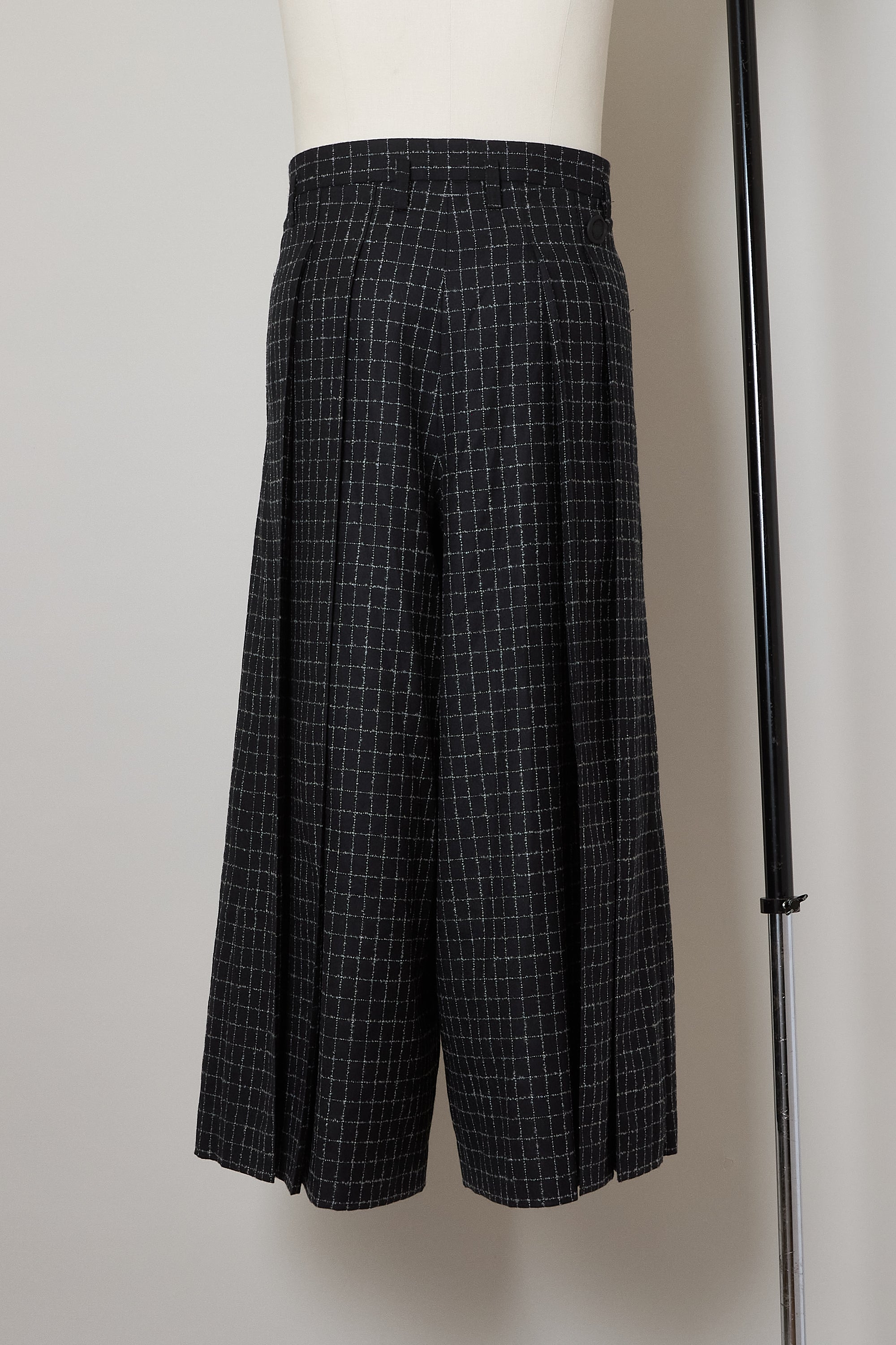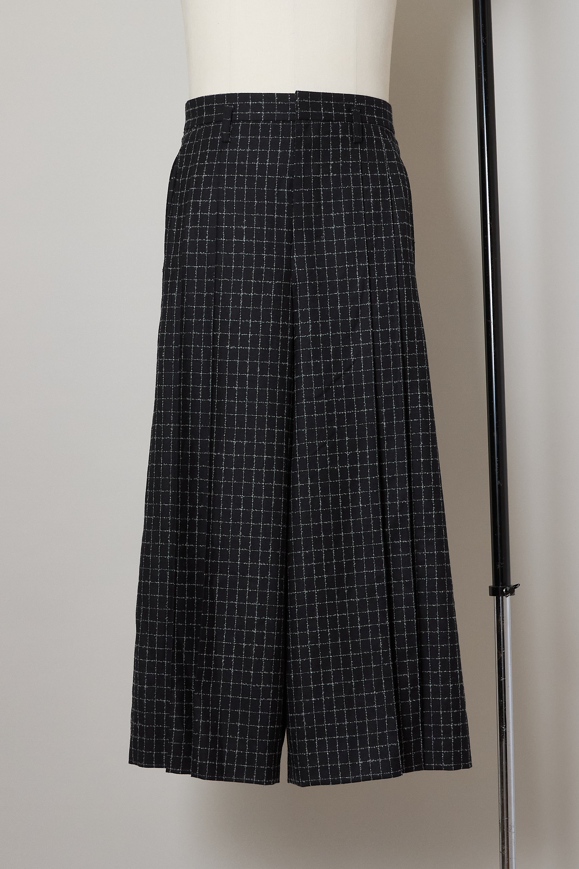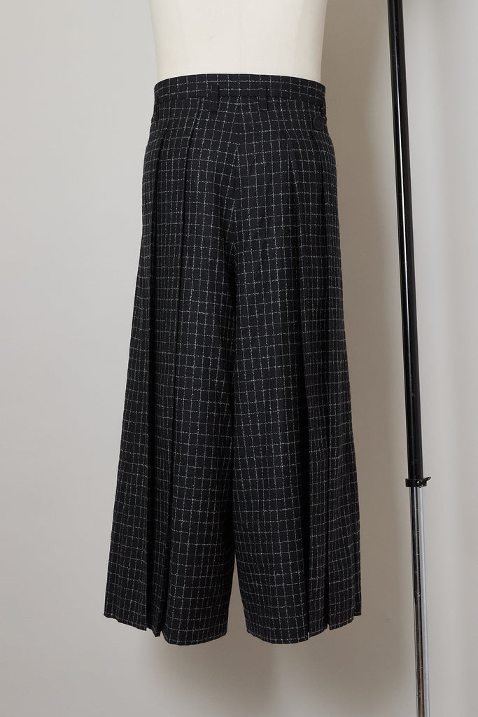 フルレングスのプリーツパンツ。